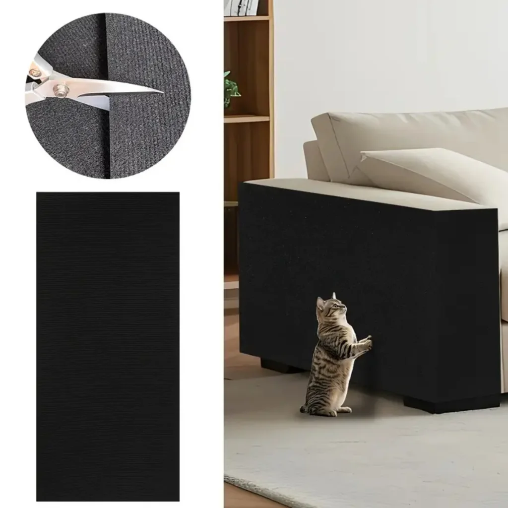 Feito de carpete premium com adesivo super resistente, este protetor é a solução ideal para evitar arranhões em sofás, camas box, portas e mesas, ao mesmo tempo em que oferece ao seu gato um espaço adequado para arranhar.